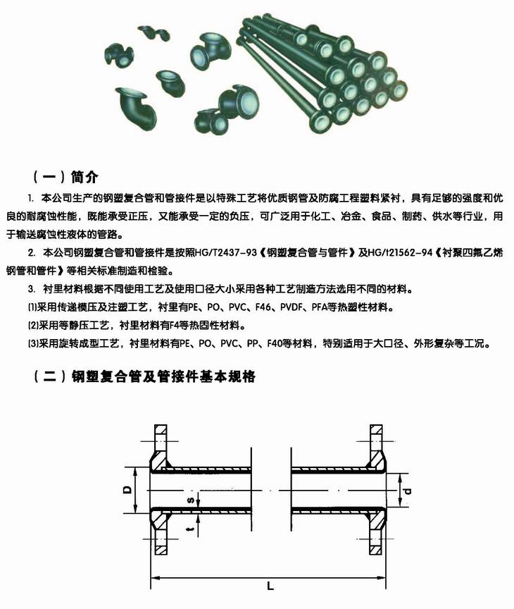 4.鋼與聚偏氟乙烯或其他偏氟類(lèi)復合管及管接件。