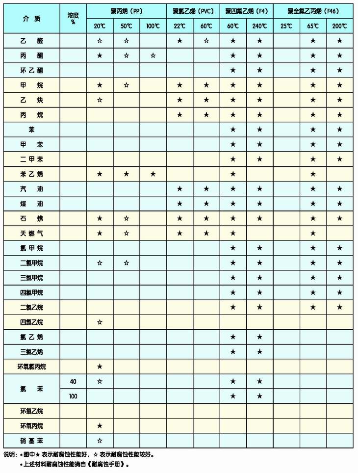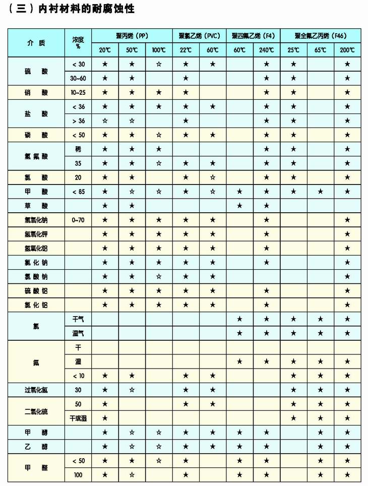 c. 耐腐蝕性能:除發(fā)煙硫酸、濃熱硫酸、硝酸等強氧化劑和90℃以下的酮、酯、胺類(lèi)以及高溫磺化劑外,能耐大多數有機酸及無(wú)機酸、氧化介質(zhì)、脂肪族的碳化物,醇類(lèi)和鹵素溶液的腐蝕。 |