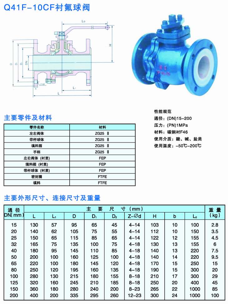 Q41F-10CF襯氟球閥